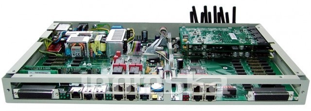 Voice and data router with high variability of configuration and utilization. Can be used as BRI/E1/GSM/VoIP gateway TDM/VoIP/ISDN PBX, multiplexer and signaling converter.